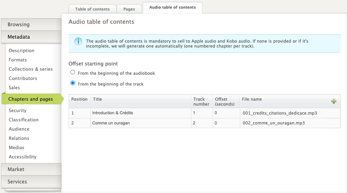 It is therefore crucial to respect the naming convention for audio tracks. If your tracks are mislabeled, the platform may assign them to the wrong chapters.