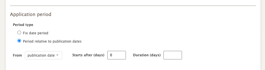 If you want the policy to start the moment you apply it to publications, without any time limit, you can simply leave this screen as it is presented by default.
