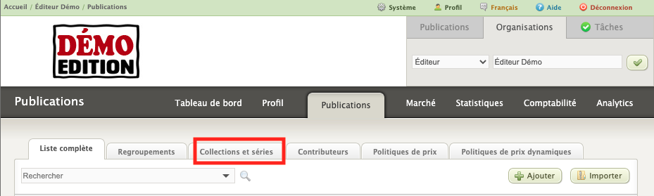 À noter qu'il vous est possible, en tout temps, de consulter l'ensemble des collections et séries présentes dans votre catalogue en vous rendant dans la section Collections et Séries de votre page d'accueil: