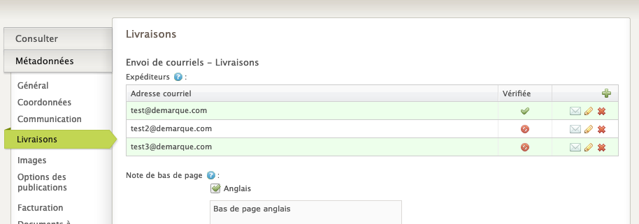 Si vous ne parvenez pas à faire valider l’adresse d’expédition, recommencez la procédure en cliquant sur l’icône d’enveloppe à droite du crochet vert. Vous recevrez alors un nouveau courriel de validation de la part d’Amazon Simple Email Service (SES). Assurez-vous aussi que ces messages ne sont pas envoyés dans le dossier d'éléments indésirables.